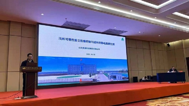 奧博公司代表做題為“淺析可燃性粉塵防爆控制與濾料防靜電阻燃處理”相關(guān)主題報告,獲得行業(yè)內(nèi)專家和從業(yè)者的高度認同。