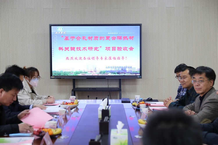 2022年4月28日,在德州學院生物物理研究院啟智樓三樓會議室,山東奧博環(huán)??萍加邢薰疚械轮輰W院進行的橫向科研項目“基于介孔材質(zhì)的復合隔熱材料關鍵技術研究”課題驗收會議順利召開。德州學院李永平副校長;武城縣科技服務中心黨組書記范忠新主任、山東奧博環(huán)??萍加邢薰究偨?jīng)理張延青高級工程師及企業(yè)技術人員等15余人參加了課題驗收會議。