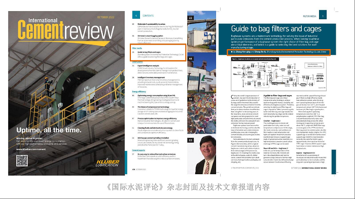 山東奧博環(huán)保公司提供的技術(shù)文章“水泥行業(yè)濾袋和袋籠選用指南”引起了國(guó)內(nèi)外水泥行業(yè)的關(guān)注,成功入選英國(guó)《國(guó)際水泥評(píng)論》雜志第10期,這是《國(guó)際水泥評(píng)論》本期期刊中唯一在列的中國(guó)技術(shù)文章。全球水泥行業(yè)最具權(quán)威性的主流媒體的肯定,意味著山東奧博環(huán)保的提供濾袋與袋籠技術(shù)進(jìn)入新的高度,引領(lǐng)水泥收塵行業(yè)的過(guò)濾技術(shù)發(fā)展。