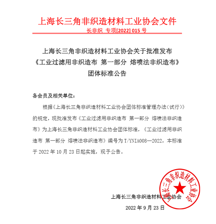 2022年9月23日,山東奧博環(huán)??萍加邢薰緟⑴c編制的 T/TNIA 008-2022《工業(yè)過(guò)濾用非織造布 第一部分 熔噴法非織造布》由上海長(zhǎng)三角非織造材料工業(yè)協(xié)會(huì)權(quán)威發(fā)布,并于2022年10月23日起實(shí)施。